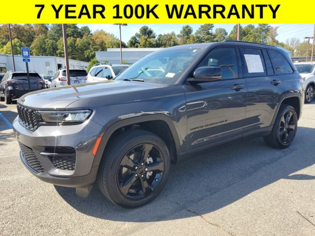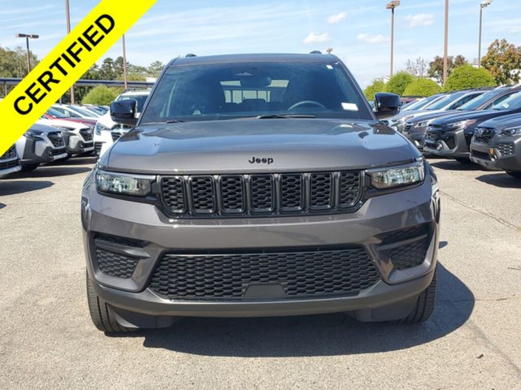 2024 Jeep Grand Cherokee Altitude X Certified. FCA US LLC Certified Pre-Owned Details: * Limited Warranty: 3 Month/3,000 Mile (whichever comes, ** Bluetooth, ** Backup Camera, ** Apple Car Play / Android Auto, 4WD, 115V Auxiliary Power Outlet, 4-Wheel Disc Brakes, 6 Speakers, ABS brakes, Air Conditioning, Alloy wheels, Altitude X, Automatic temperature control, Black Headliner, Brake assist, Bumpers: body-color, Capri Leatherette/Suede Seats, Cloth Seats, Compass, Delay-off headlights, Delete Laredo Badge, Driver door bin, Driver vanity mirror, Dual front impact airbags, Dual front side impact airbags, Electronic Stability Control, Emergency communication system, Four wheel independent suspension, Front Bucket Seats, Front Center Armrest w/Storage, Front dual zone A/C, Front reading lights, Fully automatic headlights, Gloss Black Exterior Accents, Heated door mirrors, Heated Front Seats, Heated Steering Wheel, Illuminated entry, Knee airbag, Low tire pressure warning, Normal Duty Suspension, Occupant sensing airbag, Outside temperature display, Overhead airbag, Overhead console, Panic alarm, ParkView Rear Back-Up Camera, Passenger door bin, Passenger vanity mirror, Power door mirrors, Power driver seat, Power Liftgate, Power steering, Power Sunroof, Power windows, Quick Order Package 23M Altitude X, Radio data system, Radio: Uconnect 5 w/8.4" Display, Rain Sensitive Windshield Wipers, Rear reading lights, Rear window defroster, Rear window wiper, Remote keyless entry, Remote Start System, Security system, Selectable Tire Fill Alert, Speed control, Speed-Sensitive Wipers, Split folding rear seat, Spoiler, Steering wheel mounted audio controls, Tachometer, Telescoping steering wheel, Tilt steering wheel, Traction control, Trip computer, Variably intermittent wipers, Voltmeter, Wheels: 20" x 8.5" Gloss Black Painted Aluminum, Wireless Charging Pad.