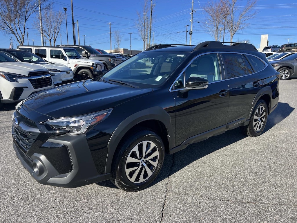 Certified. Crystal Black Silica 2025 Subaru Outback Premium AWD CVT Lineartronic 2.5L 4-Cylinder DOHC 16V New Feature, **Back up Camera, **Bluetooth, **Keyless Entry, Outback Premium, 4D Sport Utility, 2.5L 4-Cylinder DOHC 16V, CVT Lineartronic, AWD, Crystal Black Silica, 4-Wheel Disc Brakes, 6 Speakers, ABS brakes, Air Conditioning, All-Weather Floor Liners, Alloy wheels, AM/FM radio: SiriusXM with 360L, Apple CarPlay & Android Auto, Auto High-beam Headlights, Auto-Dimming Exterior Mirror w/Approach Light, Auto-Dimming Mirror w/Compass & HomeLink, Automatic temperature control, Blind Spot Detection (BSD), Brake assist, BSD w/RCTA & Keyless Access & Push Button Start, Bumpers: body-color, Cloth Upholstery, Driver door bin, Driver vanity mirror, Dual front impact airbags, Dual front side impact airbags, Electronic Stability Control, Emergency communication system: MySubaru Safety (3-year free trial), Exterior Parking Camera Rear, Four wheel independent suspension, Front anti-roll bar, Front Bucket Seats, Front Center Armrest w/Storage, Front dual zone A/C, Front fog lights, Front reading lights, Fully automatic headlights, Hands-Free Power Rear Gate, Heated door mirrors, Heated Front Bucket Seats, Heated front seats, Illuminated entry, Keyless Access w/Push Button Start, Knee airbag, Leather Shift Knob, Leather steering wheel, LED Upgrade, Low tire pressure warning, Occupant sensing airbag, Outside temperature display, Overhead airbag, Overhead console, Panic alarm, Passenger door bin, Passenger vanity mirror, Popular Package #1, Power door mirrors, Power driver seat, Power steering, Power windows, Radio: Subaru 11.6" Multimedia Plus System, Rear anti-roll bar, Rear Bumper Cover, Rear Cross Traffic Alert (RCTA), Rear seat center armrest, Rear window defroster, Rear window wiper, Remote keyless entry, Roof rack, Security system, Speed control, Speed-sensing steering, Split folding rear seat, Spoiler, Steering wheel mounted audio controls, Tachometer, Telescoping steering wheel, Tilt steering wheel, Traction control, Trip computer, Turn signal indicator mirrors, Variably intermittent wipers, Wheels: 17" x 7J Black Aluminum-Alloy.