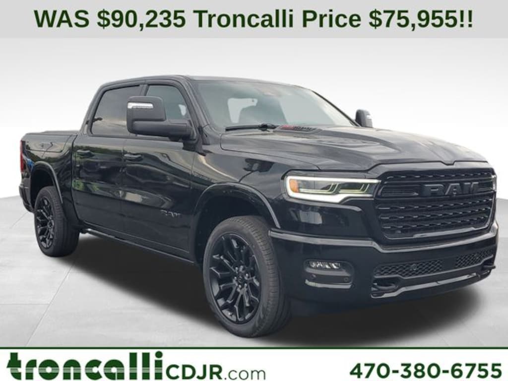 Included features are Limited Level An Equipment Group (12-Way/1-Way Trailer Connector, 14.4" Touchscreen Display, 240 Amp Alternator, 4G LTE Wi-Fi Hot Spot, Apple CarPlay, Connected Travel and Traffic Services, Connectivity - US/Canada, Disassociated Touchscreen Display, Drowsy Driver Detection, Evasive Steer Assist, Exterior 115V AC Outlet, Global Telematics Box Module, Google Android Auto, GPS Antenna Input, GPS Navigation, Hands-Free Active Driving Assist System, HD Radio, Heads-Up Display, Integrated Center Stack Radio, Integrated Voice Command with Bluetooth, Intersection Collision Assist System, LED CHMSL Lamp, Radio: Uconnect 5 Nav with 14.4" Display, RamBox Cargo Management System, SiriusXM Radio Service, SiriusXM with 360L, Smartphone as a Key Capable, Surround View Camera System, Traffic Sign Recognition, Tri-Fold Tonneau Cover, and USB Host Flip), Night Edition (Accent Color Door Handles, Accent Color Premium Power Mirrors, Accent Color Tailgate Handle, Auto Power-Folding Mirrors, Auto-Dimming Exterior Driver Mirror, Black Day Light Opening Moldings, Black Exterior Truck Badging, Black Grille Surround Texture 7 Black, Black Headlamp Bezels, Black Painted Exterior Mirrors Caps, Black Tail Lamp Bezels, Body Color Front Bumper, Body Color Rear Bumper with Step Pads, Convex Wide-Angle Exterior Mirror Insert, Dual Exhaust with Black Tips, Exterior Mirrors Courtesy Lamps, Exterior Mirrors with Heating Element, Exterior Mirrors with Memory, Exterior Mirrors with Supplemental Signals, Pirelli Brand Tires, RAM Grille Badge - Black, Sport Performance Hood, and Wheels: 22" x 9" Premium Black Aluminum), Quick Order Package 22M Limited, Towing Technology Group (Trailer Hitch Line-Up Assist), Trailer Tow Group (Trailer Brake Control, Trailer Light Check, Trailer Reverse Steering Control, and Trailer Tire Pressure Monitoring System), 19 Speakers, 3.92 Rear Axle Ratio, 4-Wheel Disc Brakes, ABS brakes, Active Noise Control System, Adjustable pedals, Air Conditioning, Alloy wheels, AM/FM radio, Apple CarPlay/Android Auto, Audio memory, Auto High-beam Headlights, Auto-dimming door mirrors, Auto-Dimming Exterior Passenger Mirror, Auto-dimming Rear-View mirror, Auto-leveling suspension, Automatic temperature control, Black Exterior Mirrors, Black Power-Fold Trailer Tow Mirrors, Bodyside moldings, Brake assist, Bumpers: chrome, Chrome Exterior Mirrors, Compass, Delay-off headlights, Driver door bin, Driver vanity mirror, Dual front impact airbags, Dual front side impact airbags, Electronic Stability Control, Exterior Parking Camera Rear, Forward and Reverse Utility Lights, Front anti-roll bar, Front Bucket Seats, Front Center Armrest w/Storage, Front dual zone A/C, Front fog lights, Front reading lights, Front wheel independent suspension, Fully automatic headlights, Garage door transmitter, Genuine wood console insert, Genuine wood dashboard insert, Genuine wood door panel insert, harman/kardon® Speakers, Heated door mirrors, Heated front seats, Heated rear seats, Heated steering wheel, Illuminated entry, Leather steering wheel, Low tire pressure warning, Memory seat, Mirror Clearance/Running Lights, Navigation System, Occupant sensing airbag, Outside temperature display, Overhead airbag, Overhead console, Panic alarm, Passenger door bin, Passenger vanity mirror, Pedal memory, Power door mirrors, Power driver seat, Power passenger seat, Power steering, Power Telescoping Mirrors, Power windows, Power-Adjustable Convex Aux Mirrors, Premium Quilted Leather Bucket Seats, Radio data system, Radio: Uconnect 5 Navigation with 12.0" Display, Rain sensing wipers, Rear anti-roll bar, Rear reading lights, Rear seat center armrest, Rear step bumper, Rea Price includes the following rebates:$2000 - 2026 National SFS Lease Loyalty Bonus Cash . Exp. 04/30/2026 $3500 - 2026 National Retail Bonus Cash . Exp. 04/30/2026 $500 - 2026 National 2026 Military Bonus Cash . Exp. 01/0