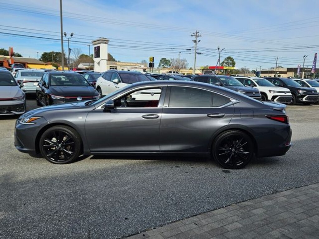 Gray 2022 Lexus ES 350 F Sport FWD 8-Speed Automatic 3.5L V6 DOHC 24V This ES is equipped with. Circuit Red W/Hadori Alum Artificial Leather, 10 Speakers, 10-Way Power Adjustable F SPORT Front Seats, 4-Wheel Disc Brakes, ABS brakes, Accessory Package (PPO), Air Conditioning, Alloy Wheel Locks, Alloy wheels, AM/FM radio: SiriusXM, Apple CarPlay/Android Auto, Auto High-beam Headlights, Auto tilt-away steering wheel, Auto-dimming door mirrors, Auto-dimming Rear-View mirror, Automatic temperature control, Brake assist, Bumpers: body-color, Cargo Net (PPO), Carpet Trunk Mat (PPO), CD player, Compass, Delay-off headlights, Door Edge Film by 3M (PPO), Driver door bin, Driver vanity mirror, Dual front impact airbags, Dual front side impact airbags, Electronic Stability Control, Emergency communication system, Exterior Parking Camera Rear, F SPORT 3-Spoke Leather Steering Wheel, F SPORT NuLuxe Seat Trim, F SPORT Package, F SPORT Suspension Tuning, Four wheel independent suspension, Front & Rear Performance Rods, Front anti-roll bar, Front Bucket Seats, Front Center Armrest, Front dual zone A/C, Front reading lights, Fully automatic headlights, Garage door transmitter: HomeLink, Heated & Ventilated Seats, Heated door mirrors, Heated front seats, Heated steering wheel, Illuminated entry, Intelligent Clearance Sonar, Intuitive Parking Assist, Key Gloves (PPO), Knee airbag, Leather Shift Knob, Leather steering wheel, Leather-Trimmed Shift Knob & Steering Wheel, Low tire pressure warning, Memory seat, Occupant sensing airbag, Outside temperature display, Overhead airbag, Overhead console, Panic alarm, Parking Support Alert/Brake, Passenger door bin, Passenger vanity mirror, Power door mirrors, Power driver seat, Power moonroof, Power passenger seat, Power steering, Power Tilt/Telescoping Steering Wheel w/Memory, Power windows, Radio data system, Radio: Lexus Multimedia System, Rain Sensing Wipers, Rain sensing wipers, Rear anti-roll bar, Rear reading lights, Rear seat center armrest, Rear side impact airbag, Rear Spoiler, Rear window defroster, Remote keyless entry, Security system, Speed control, Speed-sensing steering, Spoiler, Sport steering wheel, Steering wheel memory, Steering wheel mounted audio controls, Tachometer, Telescoping steering wheel, Tilt steering wheel, Traction control, Trip computer, Turn signal indicator mirrors, Variably intermittent wipers, Ventilated front seats, Wheels: 19" x 8J Split-5-Spoke Aluminum Alloy, Wireless Charger, Circuit Red W/Hadori Alum Artificial Leather.