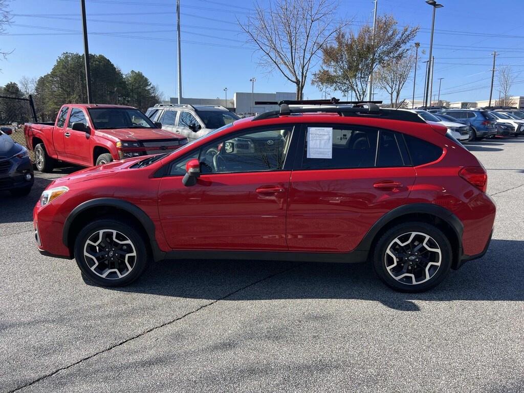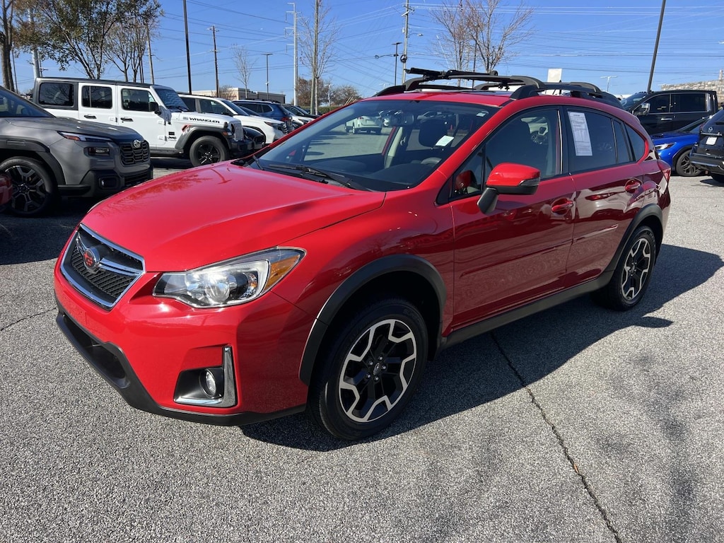 Red 2016 Subaru Crosstrek 2.0i Premium AWD Lineartronic CVT 2.0L 16V DOHC **Back up Camera, **Bluetooth, **Keyless Entry, **Blind Spot Monitor, **Apple CarPlay, **Sunroof/Moonroof, 4D Sport Utility, 2.0L 16V DOHC, Lineartronic CVT, AWD, Red, 17" x 7.0J Aluminum Alloy Wheels, 3.70 Axle Ratio, 4-Wheel Disc Brakes, 6 Speakers, ABS brakes, Air Conditioning, All Weather Floor Mats, Alloy wheels, AM/FM radio, Auto-Dimming Mirror w/Compass & HomeLink, Blind Spot Detection/Rear Cross Traffic Alert, Brake assist, Bumpers: body-color, CD player, Cloth Upholstery, Driver door bin, Driver vanity mirror, Dual front impact airbags, Dual front side impact airbags, Electronic Stability Control, Emergency communication system: STARLINK, Exterior Parking Camera Rear, Eyesight & Subaru Starlink 7.0 Multimedia Plus Pkg, Four wheel independent suspension, Front anti-roll bar, Front Bucket Seats, Front Center Armrest, Front fog lights, Front reading lights, Heated door mirrors, Heated Front Bucket Seats, Heated front seats, Illuminated entry, Knee airbag, Lane Departure Warning System, Low tire pressure warning, Occupant sensing airbag, Outside temperature display, Overhead airbag, Panic alarm, Passenger door bin, Passenger vanity mirror, Popular Package #2, Power door mirrors, Power Moonroof, Power steering, Power windows, Radio data system, Radio: Subaru Starlink 6.2" Multimedia System, Radio: Subaru Starlink 7.0" Multimedia Plus System, Rear anti-roll bar, Rear Bumper Cover, Rear Seat Back Protector, Rear Vision Camera, Rear window defroster, Rear window wiper, Remote keyless entry, Roof rack: rails only, Security system, Speed control, Speed-sensing steering, Splash Guards, Split folding rear seat, Spoiler, Steering wheel mounted audio controls, Subaru Starlink Smartphone Integration, Tachometer, Telescoping steering wheel, Tilt steering wheel, Traction control, Trip computer, Variably intermittent wipers.