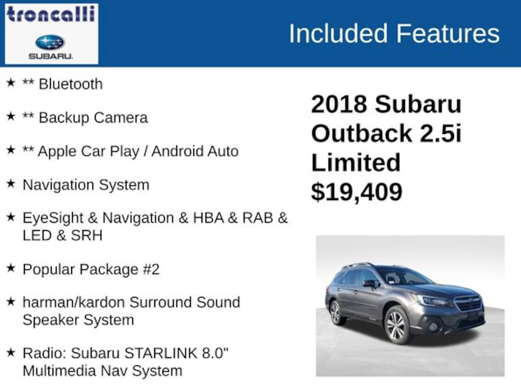 Discover the perfect blend of capability, technology, and style in this stunning 2018 Subaru Outback 2.5i Limited. This exceptional pre-owned vehicle is ready to elevate your driving experience and take you on extraordinary adventures.