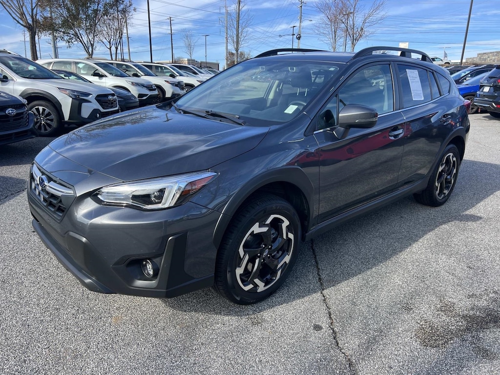 Certified. Gray Metallic 2023 Subaru Crosstrek Limited AWD Lineartronic CVT 2.5L 4-Cylinder DOHC 16V New Feature, **Back up Camera, **Bluetooth, **Keyless Entry, **Automatic Headlights, **Blind Spot Monitor, **Apple CarPlay, Crosstrek Limited, 4D Sport Utility, 2.5L 4-Cylinder DOHC 16V, Lineartronic CVT, AWD, Gray Metallic, Black W/Orange Stitching Leather, 3.70 Axle Ratio, 4-Wheel Disc Brakes, 6 Speakers, ABS brakes, Air Conditioning, Alloy wheels, AM/FM radio: SiriusXM, Anti-whiplash front head restraints, Auto High-beam Headlights, Auto-Dimming Mirror w/Compass & HomeLink, Automatic temperature control, Brake assist, Bumpers: body-color, CD player, Driver door bin, Driver vanity mirror, Dual front impact airbags, Dual front side impact airbags, Electronic Stability Control, Emergency communication system: STARLINK Safety and Security (Subscription Required), Exterior Parking Camera Rear, Four wheel independent suspension, Front anti-roll bar, Front Bucket Seats, Front Center Armrest, Front fog lights, Front reading lights, Fully automatic headlights, harman/kardon Speaker System, Heated door mirrors, Heated Front Bucket Seats, Heated front seats, Illuminated entry, Knee airbag, Leather-Trimmed Upholstery, Low tire pressure warning, Map & Dome Lights LED Upgrade, Moonroof & Navigation & harman/kardon Audio, Occupant sensing airbag, Outside temperature display, Overhead airbag, Overhead console, Panic alarm, Passenger vanity mirror, Power door mirrors, Power driver seat, Power Moonroof, Power steering, Power windows, Radio data system, Radio: Subaru STARLINK 8.0" Multimedia Nav System, Radio: Subaru STARLINK 8.0" Multimedia Plus System, Rear anti-roll bar, Rear seat center armrest, Rear Seatback Protector, Rear window defroster, Rear window wiper, Remote keyless entry, Security system, Speed control, Speed-sensing steering, Split folding rear seat, Spoiler, STARLINK/Apple CarPlay/Android Auto, Steering wheel mounted audio controls, Tachometer, Telescoping steering wheel, Tilt steering wheel, Traction control, Trip computer, Variably intermittent wipers, Wheels: 18" x 7.0J Alum Alloy Blk w/Machine Finish.