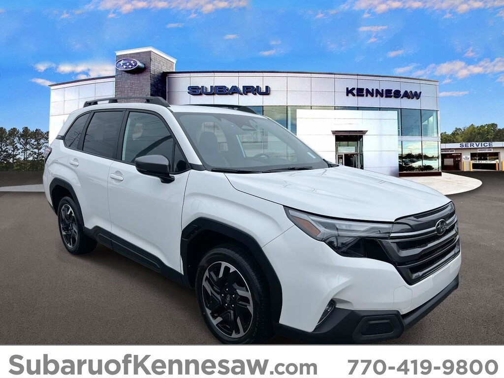 Certified. White 2026 Subaru Forester Limited AWD Lineartronic CVT 2.5L 4-Cylinder DOHC 16V New Feature, **Back up Camera, **Bluetooth, **Keyless Entry, **Blind Spot Monitor, **Apple CarPlay, Forester Limited, 4D Sport Utility, 2.5L 4-Cylinder DOHC 16V, Lineartronic CVT, AWD, White, 4-Wheel Disc Brakes, 6 Speakers, ABS brakes, Air Conditioning, Alloy wheels, AM/FM radio: SiriusXM with 360L, Anti-whiplash front head restraints, Auto High-beam Headlights, Automatic temperature control, Brake assist, Bumpers: body-color, Driver door bin, Driver vanity mirror, Dual front impact airbags, Dual front side impact airbags, Electronic Stability Control, Emergency communication system: MySubaru Companion (5-years free), Exterior Parking Camera Rear, Four wheel independent suspension, Front anti-roll bar, Front Bucket Seats, Front Center Armrest, Front dual zone A/C, Front fog lights, Front reading lights, Fully automatic headlights, Harman/Kardon Speaker System and Navigation and Reverse Automatic Braking, Heated door mirrors, Heated Front Bucket Seats, Heated front seats, Heated steering wheel, Illuminated entry, Knee airbag, Leather steering wheel, Low tire pressure warning, Occupant sensing airbag, Outside temperature display, Overhead airbag, Overhead console, Panic alarm, Passenger door bin, Passenger vanity mirror, Perforated Leather-Trimmed Upholstery, Power door mirrors, Power driver seat, Power Liftgate, Power moonroof: Panoramic, Power passenger seat, Power steering, Power windows, Radio data system, Radio: Subaru 11.6" Multimedia Navigation System, Radio: Subaru 11.6" Multimedia Plus System, Rain sensing wipers, Rear anti-roll bar, Rear seat center armrest, Rear window defroster, Rear window wiper, Remote keyless entry, Reverse Automatic Braking (RAB) System, Security system, Speed control, Speed-sensing steering, Split folding rear seat, Spoiler, Steering wheel mounted audio controls, Tachometer, Telescoping steering wheel, Tilt steering wheel, Traction control, Trip computer, Turn signal indicator mirrors, Variably intermittent wipers, Wheels: 18" x 7.0 J Dark Metallic Aluminum-Alloy.